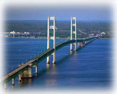 Самый длинный мост в Америке, его называют ‘Mighty Mac’ или ‘Big Mac’. Соединяет верхнюю и нижнюю части полуострова Мичиган. Его постройка была закончено в 1957 году.